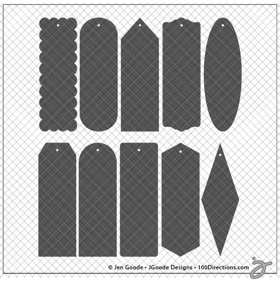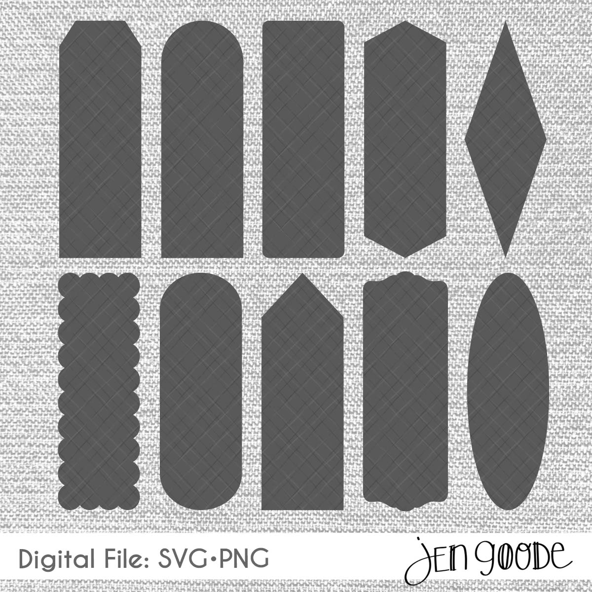 This template features 10 bookmark shapes. The set includes 8 files with 5 designs on each. There are 10 solid shapes and 10 shapes with a top hole for a tassel. You'll get 4 PNG files and 4 SVG files.