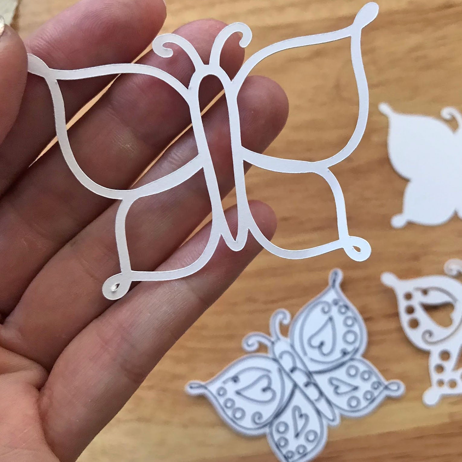 This butterfly design is a multi-layered cut file with a draw line. Use this art with your favorite cutting machine to create pretty butterfly projects. Choose your own colors and materials to create the look you want.