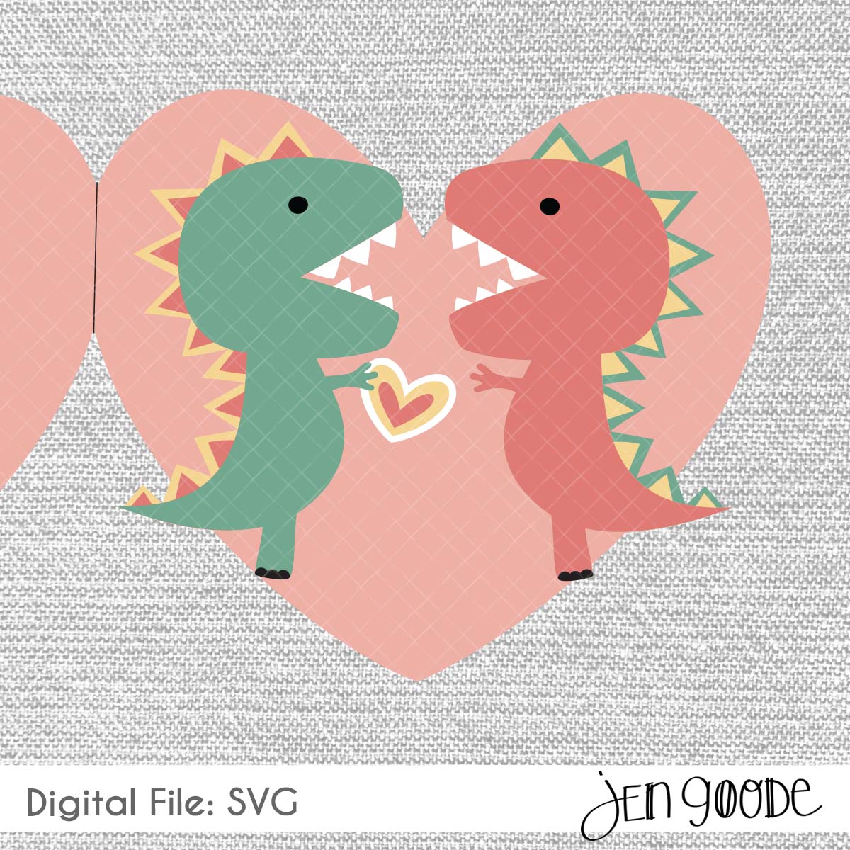 Format: Multi-layer SVG - 1 multi-layered file that includes 2 dinosaurs, a mini heart and a heart card.
