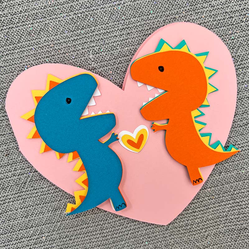 This dinosaur Valentine design is a multi-layered cut file. Use this art with your favorite cutting machine to create cute dino Valentine projects. Choose your own colors and materials to create the look you want.