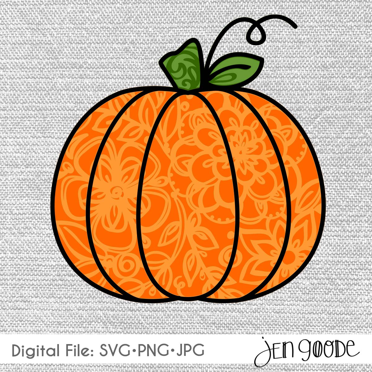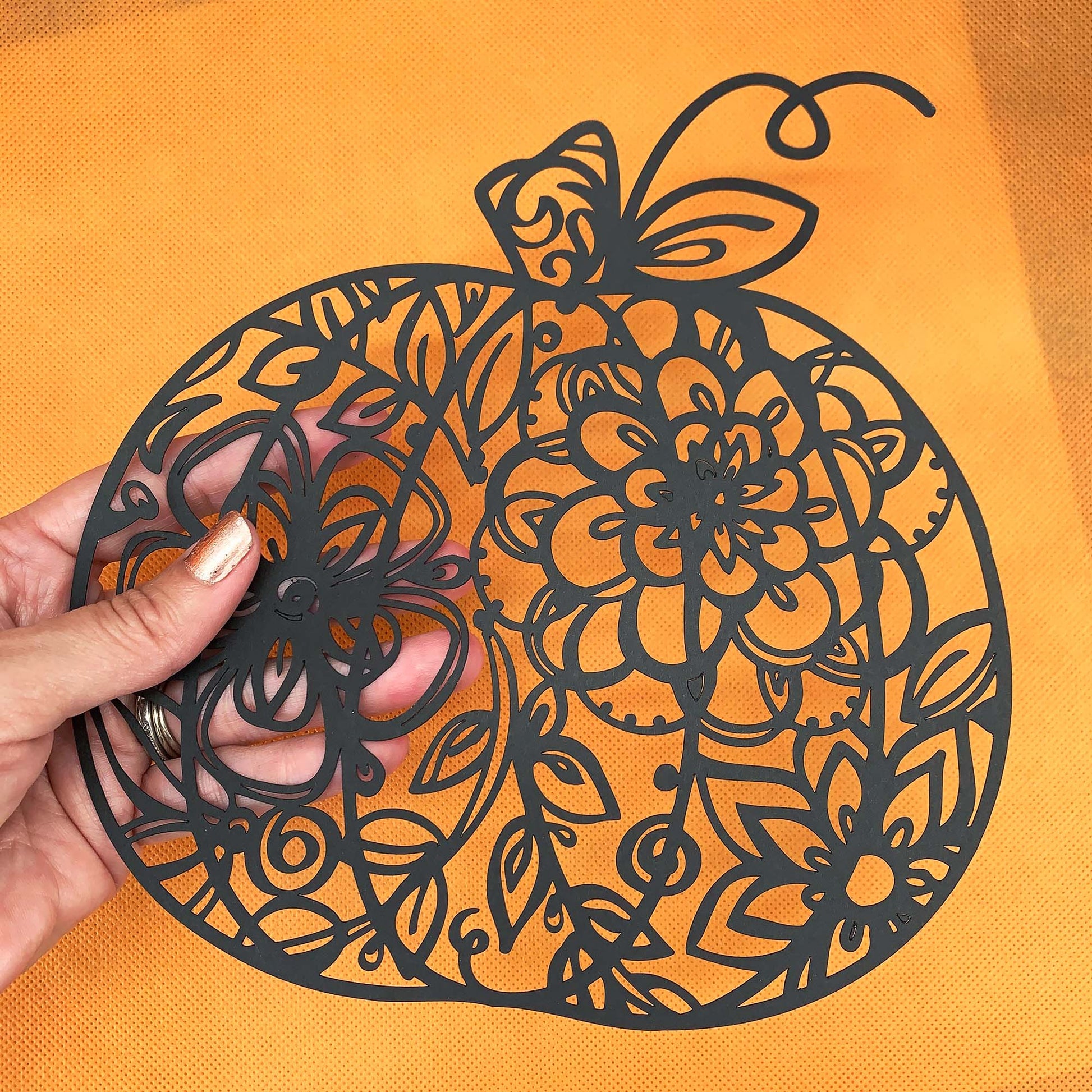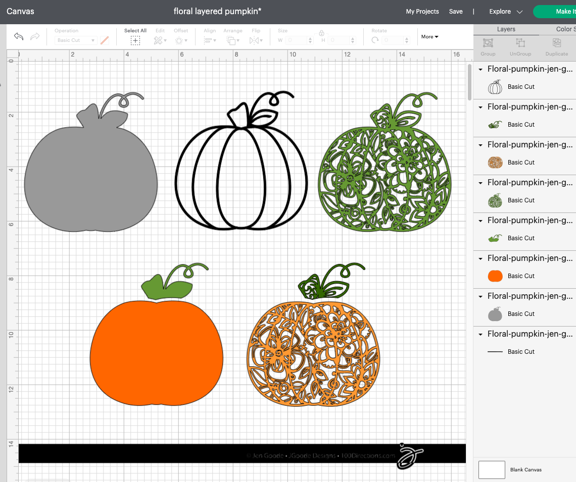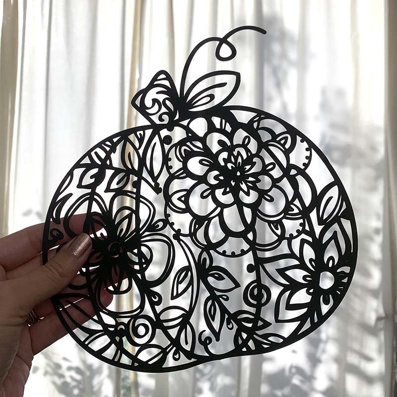 This floral pumpkin design is a multi-layered cut file. Use this art with your favorite cutting machine to create pretty pumpkin projects. Choose your own colors and materials to create the look you want.