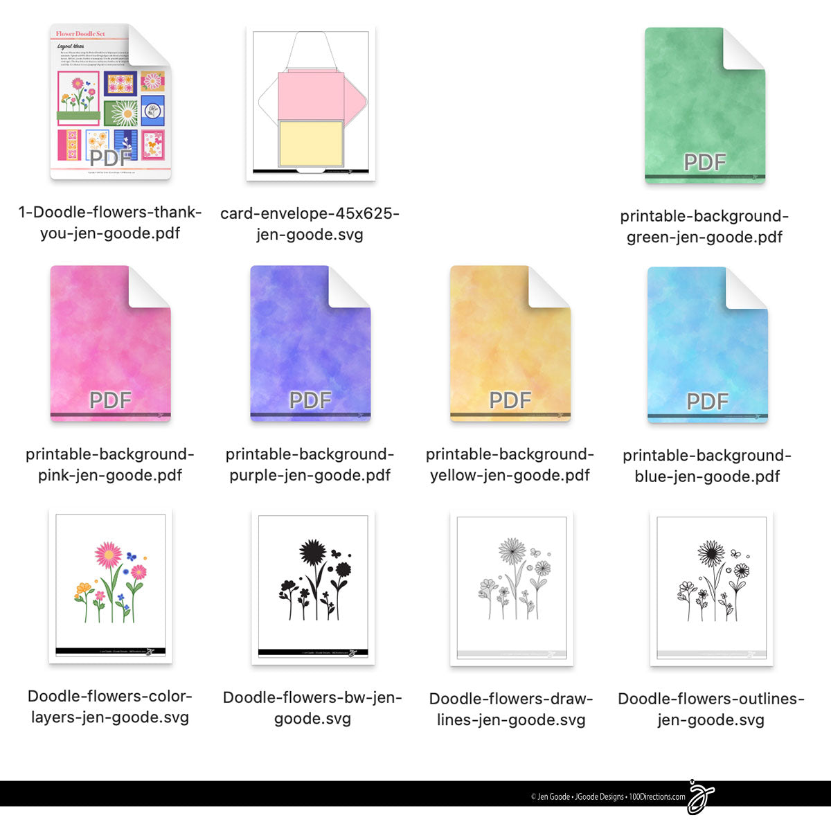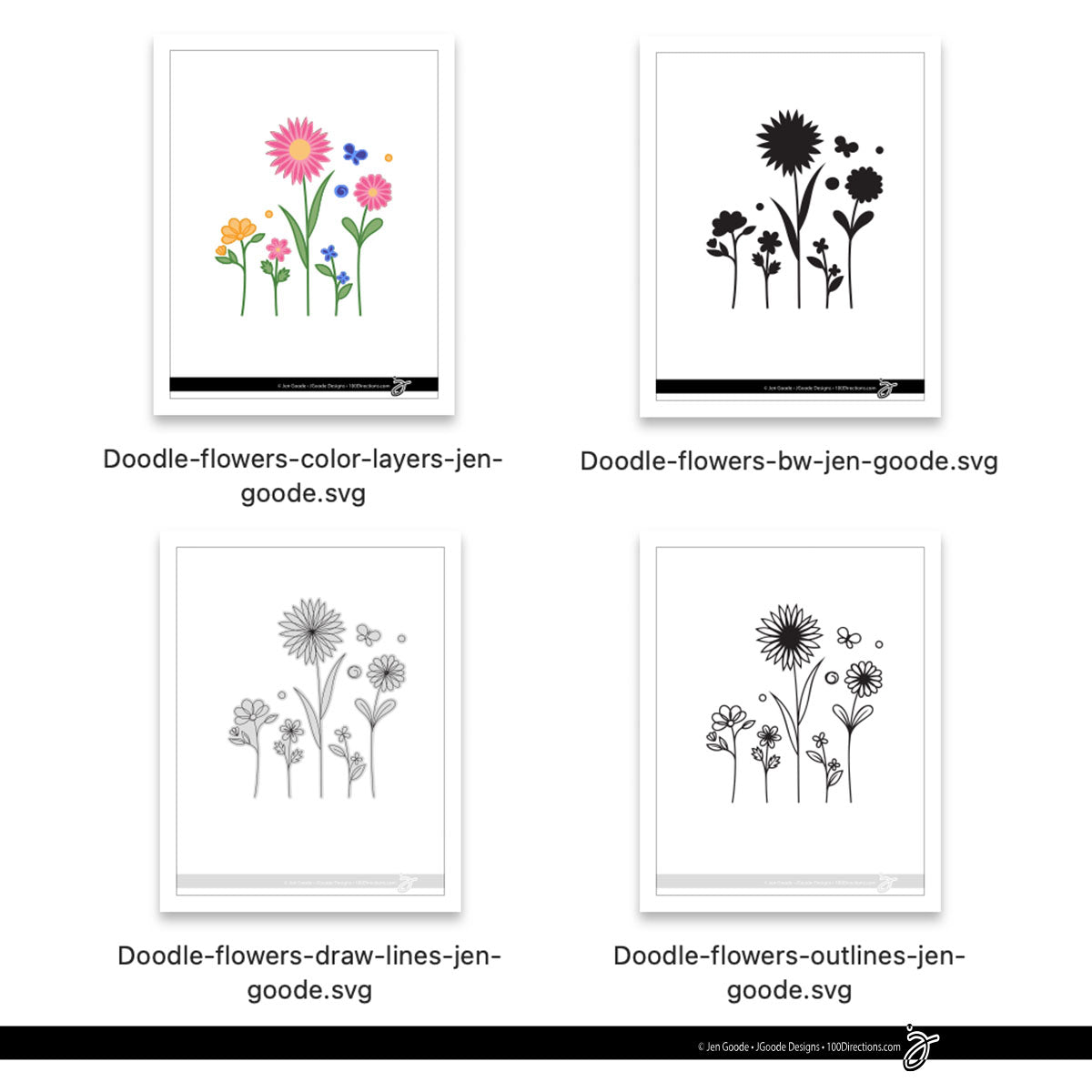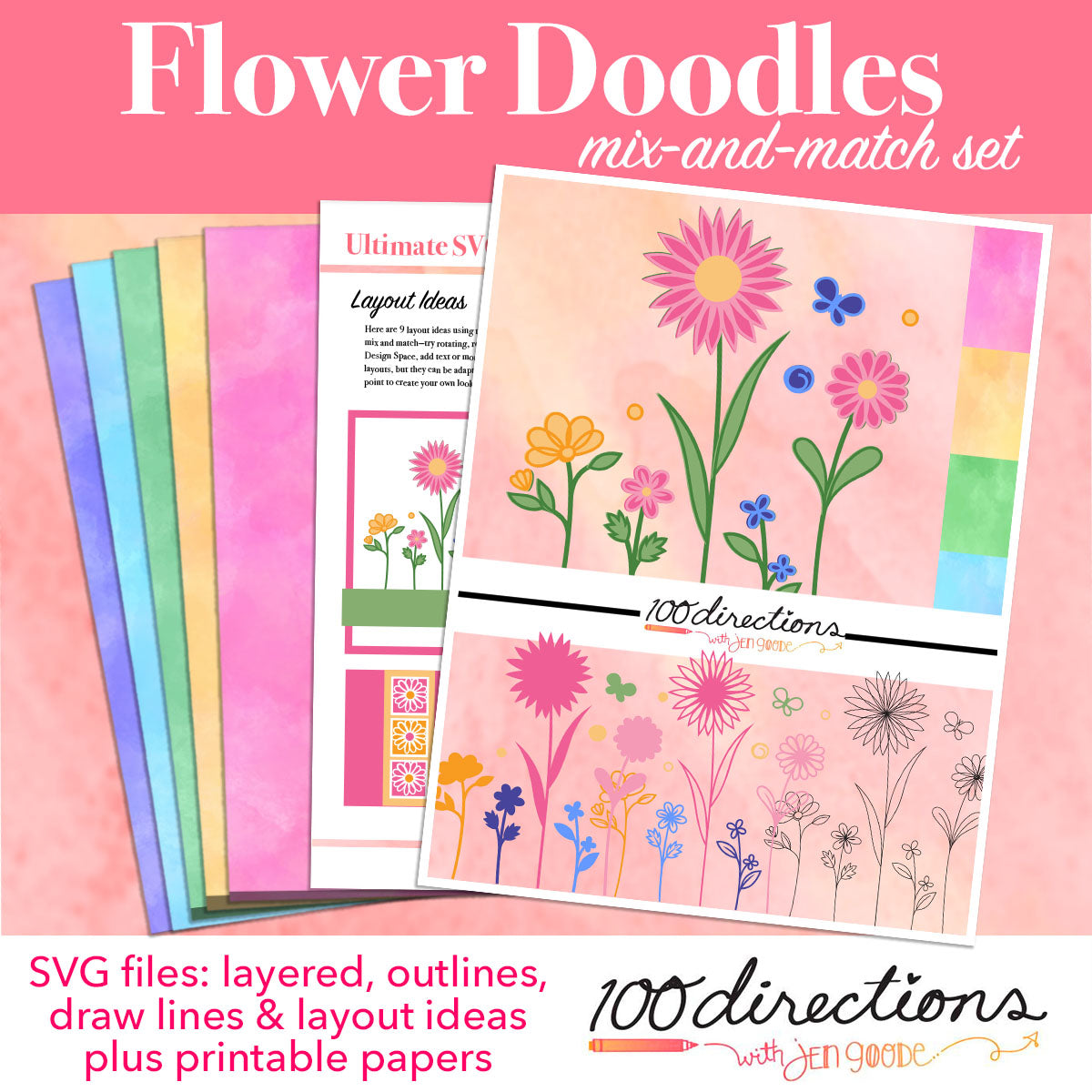 Designed with Cricut crafters in mind, this flower doodle design set includes layered SVGs, draw line designs, and printable papers you can mix and match to create a variety of floral themed projects. A bonus PDF is included with layout ideas to jumpstart your next project.