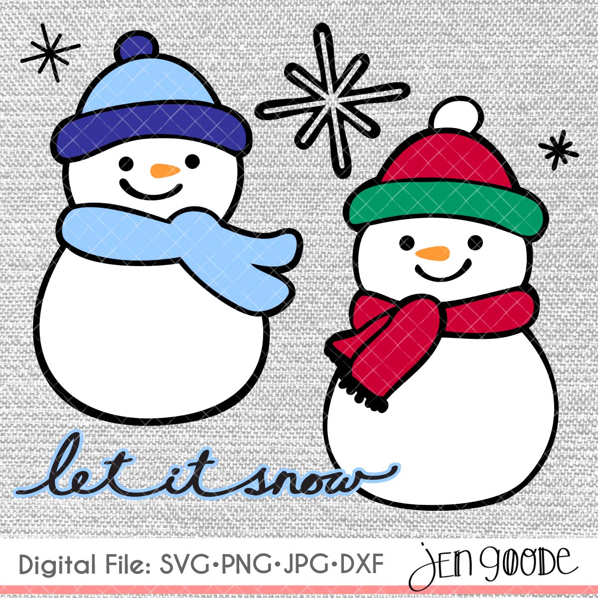 Here is a set of winter-themed SVG cut file designs. The set features 2 cute. multi-layered snowmen and modern style snowflakes along with a "let it snow" word art design.